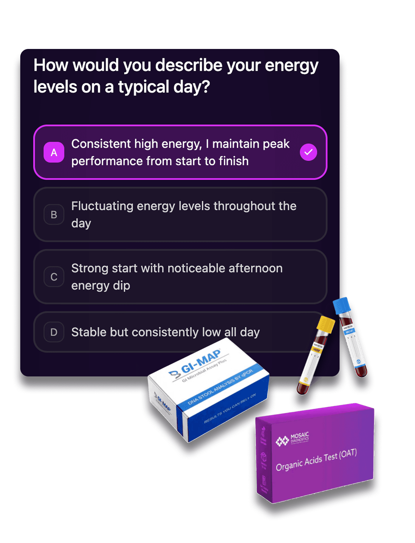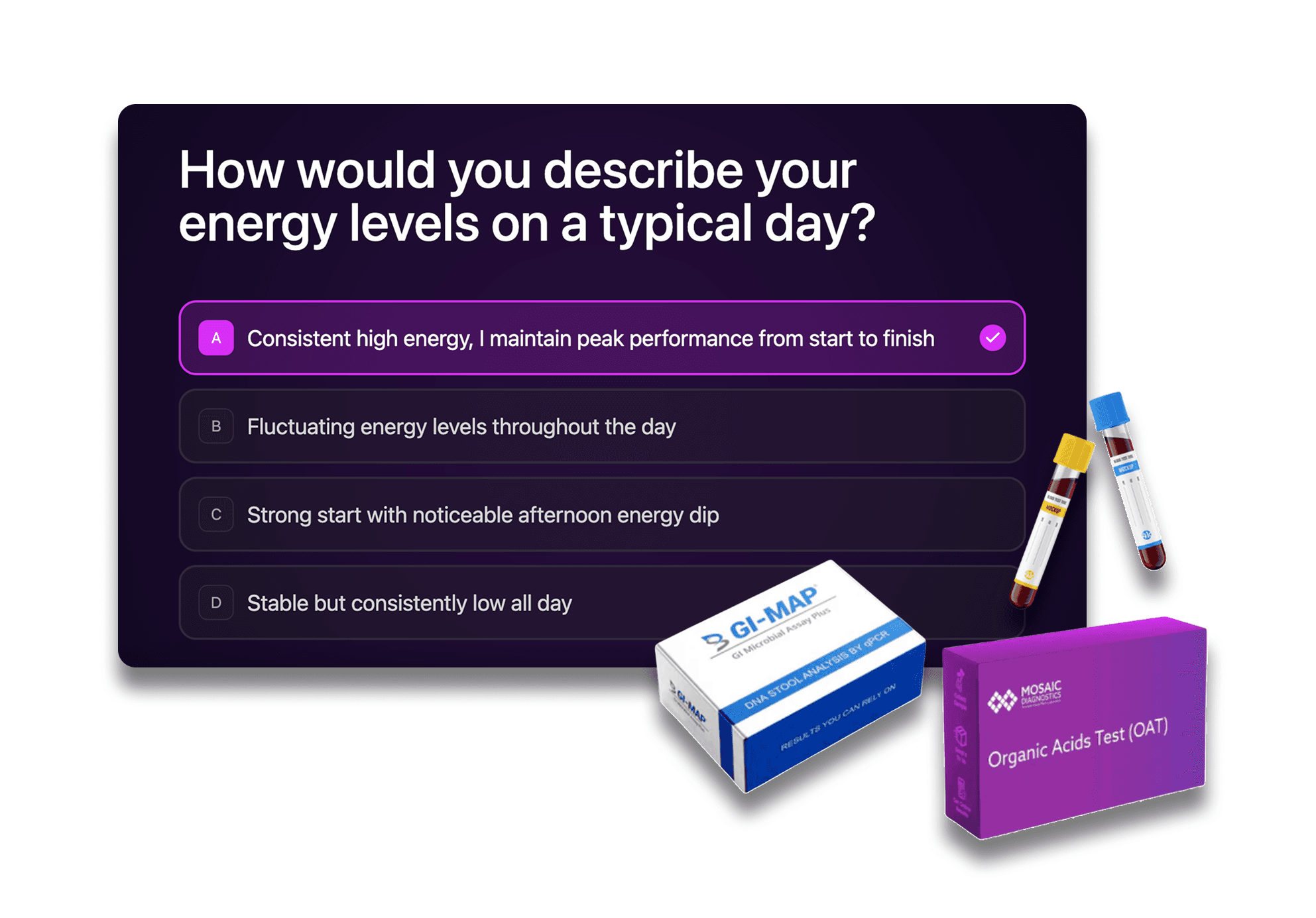 We start with a performance assessment and lab testing including blood, gut, and urine to identify root-causes of poor performance